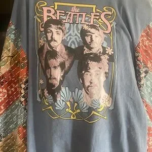 Stylish long sleeve oversized shirt featuring The Beatles graphic. Unique multicolor sleeve design.size M/L. Brand new condition