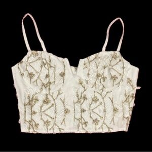Cream Embellished Crop Camisole with Bustier Style