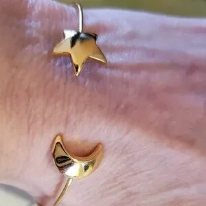 Super cute and dainty gold colored moon and star bangle. Super lightweight. In unused and excellent condition. who doesn't love the moon and stars?
