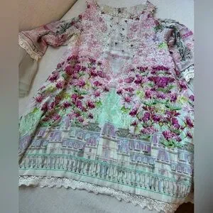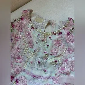 Gorgeous silk tunic with pearl details! Size XS - will fit someone with a smaller chest