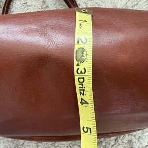 In very good condition. Shape has relaxed and leather has a distressed look especially on backside but it fits the look of the bag. A few minor marks in interior and some minor wear to corners of bag. Has magnetic closure and detachable mirror.