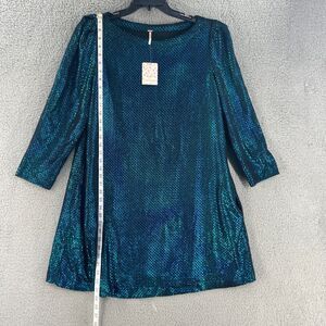 Free People Dress Diamond Forever Flowy Tunic L Blue metallic Pocket Cocktail