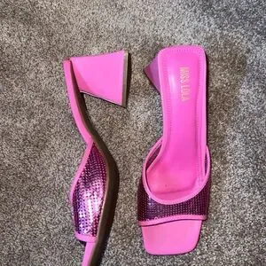 Miss Lola Pink Curved Heel Sandals