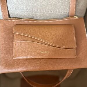 Polene Cyme large size ordered directly from Polene Spain ..original shipping box, Polene box, packing, dust bag, Polene pouch as well as a Polene card holder and Polene purse charm..also a purse organizer made for the purse. Purse used for aprox. 3 weeks…excellent condition. Booklets included as well. Camel color price reflects all items included…make REASONABLE offer…I negotiate