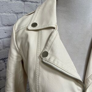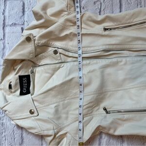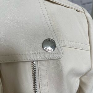White/cream/ivory GUESS vegan/faux Leather biker Jacket sz M Y2K vintage