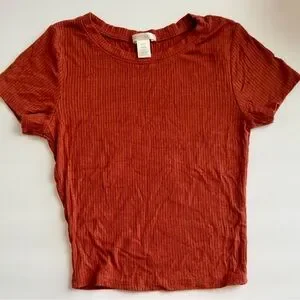 Perfect basic ribbed short sleeve crop. Color is a brick red perfect for fall