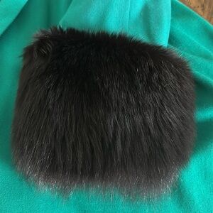 This elegant teal swing jacket features luxurious black fur (silver fox?) cuffs