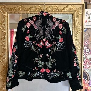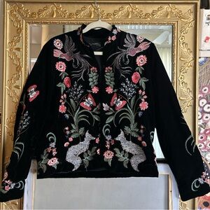 Zara Black Velvet Embroidered Embellished Woodland Fox Bird Jacket Blazer Large