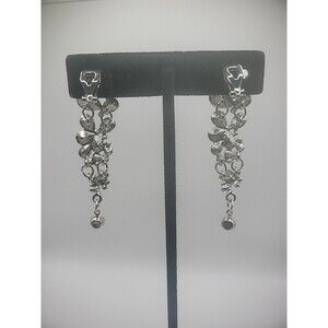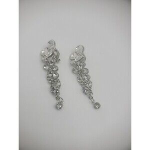 Vintage chandelier earrings featuring crystal embellishments with clip-on closure. These silver-tone earrings are a reproduction of a vintage design, suitable for various occasions like weddings, anniversaries, and birthdays. The dangle/drop style adds elegance to any outfit, making them ideal for women who appreciate vintage and antique jewelry.