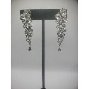 Vintage Chandelier Earrings Crystal Clip On Huggie Dangle Drop Jewelry Costume