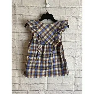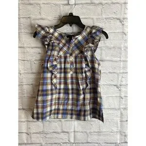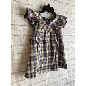 J. Crew Women’s Casual Preppy Ruffle Top Plaid Sleeveless Blouse Size 00