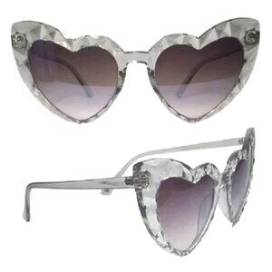 Elevate your style with Betsey Johnson Cystal clear heart shaped sunglasses. Perfect for any occasion, these sunglasses offer a blend of elegance and modern flair.