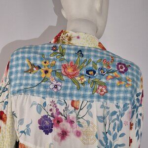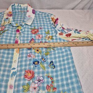 John Mark Women’s Shirt Top Embroidered Floral 3/4 Sleeve Button Tunic (9)
