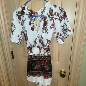 It's so cute to Misses medium romper. By Francesca, Miami brand, floral print. Short length ties in the back. Like New. low V neck.