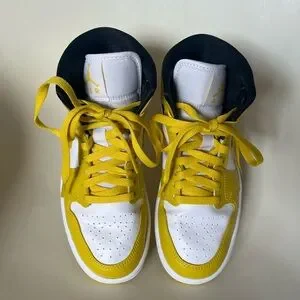 Nike Air Jordan 1 Mid 'Vivid Sulfur' Yellow White Basketball Shoes Size 6