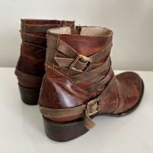 Freebird by Steven- Sammi Boot Multi Strap Leather Ankle Booties Cognac Size 10