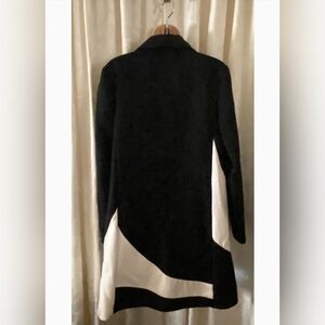 Per Se Black and White Geometric Colorblock Long Blazer Jacket Coat Size 8