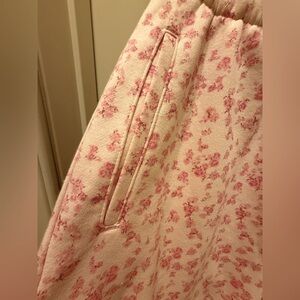 Comfortable pink jogger pants with a floral pattern. Perfect for casual wear.