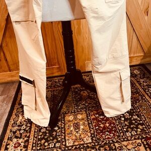These tan cargo pants from American Stitch offer a relaxed fit and durable fabric, perfect for outdoor adventures. The elastic waistband ensures comfort and flexibility throughout the day.