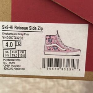 These Vans sneakers feature a playful pink and white color scheme with a whimsical pattern that adds a touch of fun to any outfit. The classic low-top silhouette and durable rubber sole ensure comfort and style for everyday wear. Perfect for those who love a unique and eye-catching look. FIT SMALL