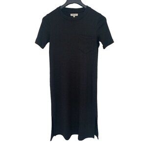 Madewell Pocket Tee ribbed midi dress in black size XS B8