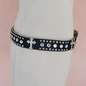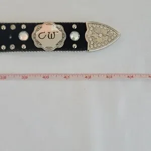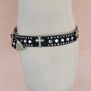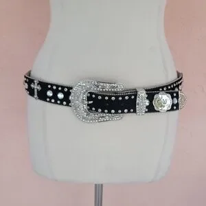 CW Country Western Crystal & Rhinestone Studded Leather Black Belt