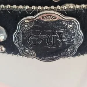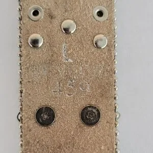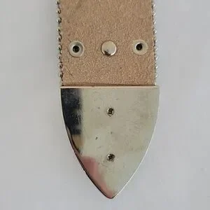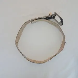 Gorgeous and stylish black leather belt with silver, crystal, and rhinestone hardware. Made by CW, size Large. I bought this belt years ago and wore it a few times. There are 2 rhinestones missing from the loop keeper hardware, and some scratches on hardware, as shown in the pictures. Please refer to the pictures, as they are part of the description as well. This belt is definitely a perfect way to dress up any outfit and add a little flashy bling.