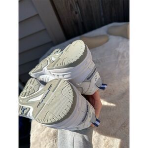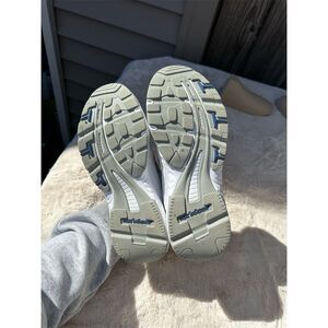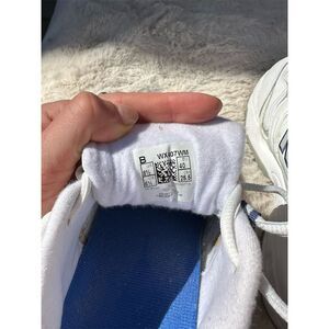 Keywords: New Balance, women's sneaker, size 8.5, white sneaker, leather upper, cushioned insole, non-slip outsole, athletic shoe, lace-up, pre-owned, gym shoe, casual wear, WX407WM, women's athletic shoe, sneaker style.