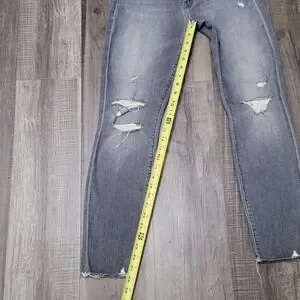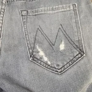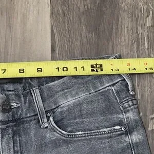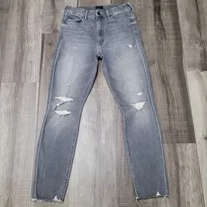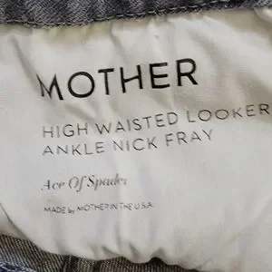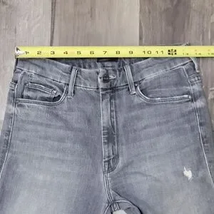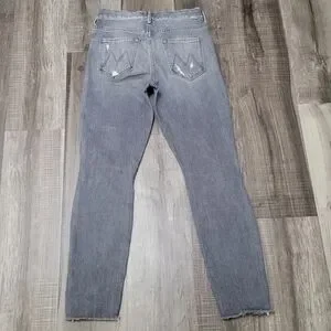 Pre-owned and in great condition. Women's Mother High Waisted Looker Ankle Nick Fray Jeans. Designed distressing. Frayed hem. Color gray. Zipper fly.