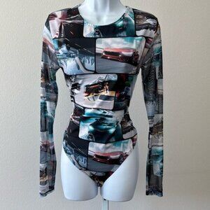 Features/Accents: Pant Set, Jumpsuit, Bodysuit, Bodysuit with Snap Closure, Car Print, Grapic Print, 2 Piece Outfit, Long Sleeves, Sheer Sleeves, Mesh Sleeves, Sleek Fit, Body Hugging