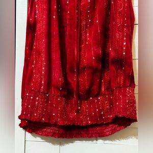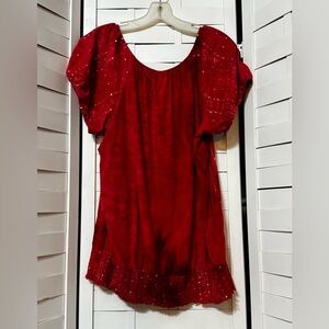 Red semi Tye dye top with sequenced with puffed sleeves and stretchy hemline