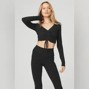 Ribbed Cinch Cropped Long Sleeve