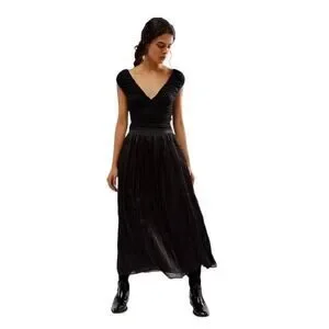 Free People New Vera City Black Pleated Maxi Skirt with Pockets Size 8 NWT