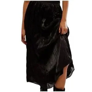 Free People New Vera City Black Pleated Maxi Ankle Skirt with Pockets 8 NWT