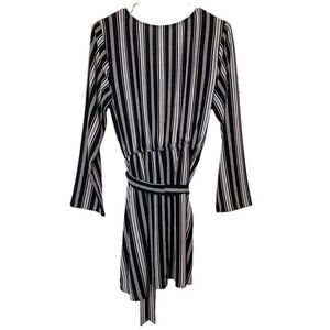 Featured in contrast stripes, this faux wrap dress by Speechless elevates your wardrobe in sleek style. Great used condition!