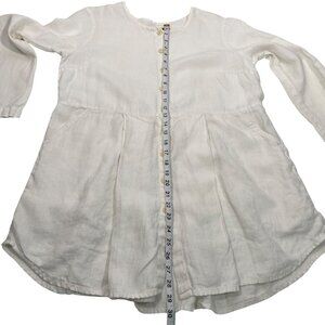 FLAX White Button-Down Long Sleeve linen Tunic Dress Pockets women’s S lagenlook