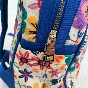 Like new royal blue and retro floral backpack. Gold Hardware. Features 2 side pockets, large front zip pocket and full interior slip pocket. Double zip closure.