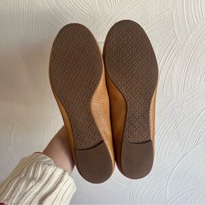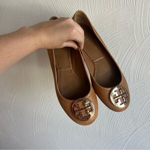 Tory Burch Reva Ballet Flat Tumbled Leather in Royal Tan/Gold size 10.5