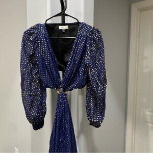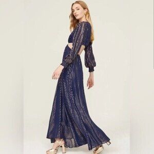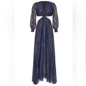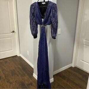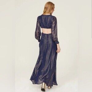 DELFI Collective Cerise Gown Size Small $648 Blue Polka Dot Metallic Gold