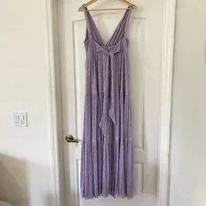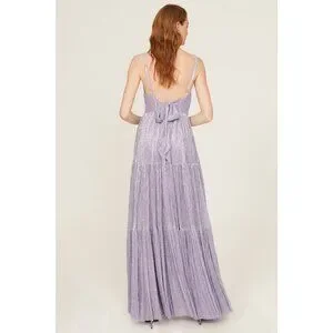 Sabina Musayev Pacific Purple Metallic Maxi Gown Tiered Size Medium Dress Read*