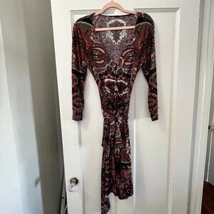 Faux Wrap Dress Paisley Pattern - Flattering Office Dress - Vintage 90s? EUC