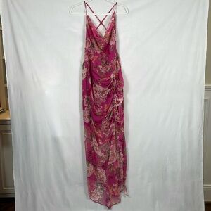 Sau Lee Maxi Dress Size 14 Revolve. Beautiful Floral Maxi Dress. Bright Colorful Pink Floral Print. Low Back With Adjustable Shoulder Straps. Front Leg Slit. Back Zipper. Please Review All Photos.