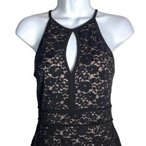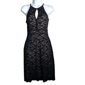 Night Way Black Strech Lace Halter Cocktail Dress Sz 4