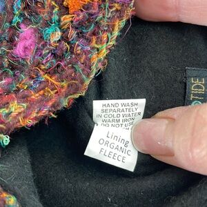 60% wool, 40% silk with organic fleece lining.