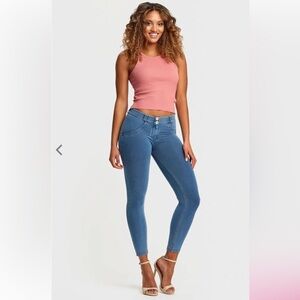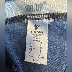 Freddy WR.UP Denim Legging Petite Mid Rise Light Blue Yellow Stitching XS