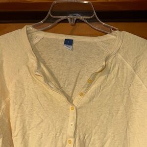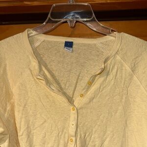 This yellow blouse from Old Navy features a relaxed fit with long sleeves, perfect for a comfortable and stylish look. The buttoned design adds a classic touch, making it ideal for everyday wear. Its soft fabric ensures a cozy feel throughout the day.