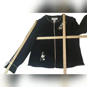 Sag Harbor Vintage Black/Cream Floral Embroidered Blazer Size 14