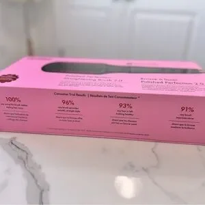 Glide the Polished Perfection Straightening Brush through a section of dry hair (as you would a paddle brush) to reveal smooth style. For best results, slide the brush through the hair at a moderate pace from root to tip. Do not stop in one place for more than 10 seconds to prevent overheating hair.