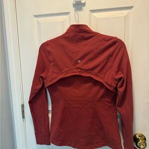 Lululemon define jacket with gold accents. It is in very good condition selling because I’ve lost weight and it doesn’t fit me anymore. The color is like a burnt orange/maroon.