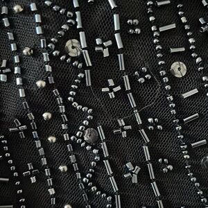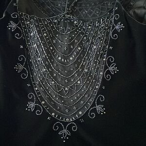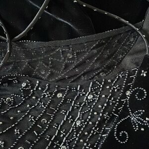 First photo found online not of actual dress. Early 2000’s Size 13/14 fits like an 8 has stretch. Last photos show where beading needs to be replaced. Back of beading along top needs half bead strip replacement in photo 10. Beautiful comfortable dress just slightly big on me.